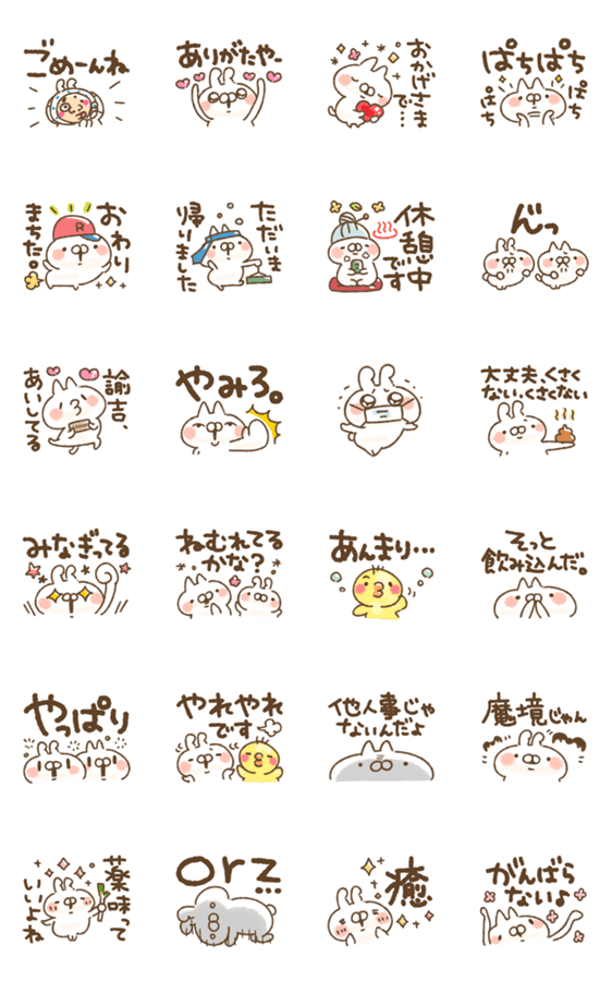 | スタンプ説明 | ねことうさぎの名前スタンプシリーズ。ゆるーく色んな言葉が入った動く(うごく)スタンプです。懐かしいのもある。デカ文字。山田まぽん作 |