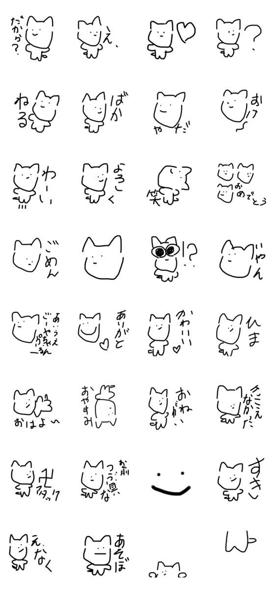 白ネコのあいうえお・・・ってるスタンプ