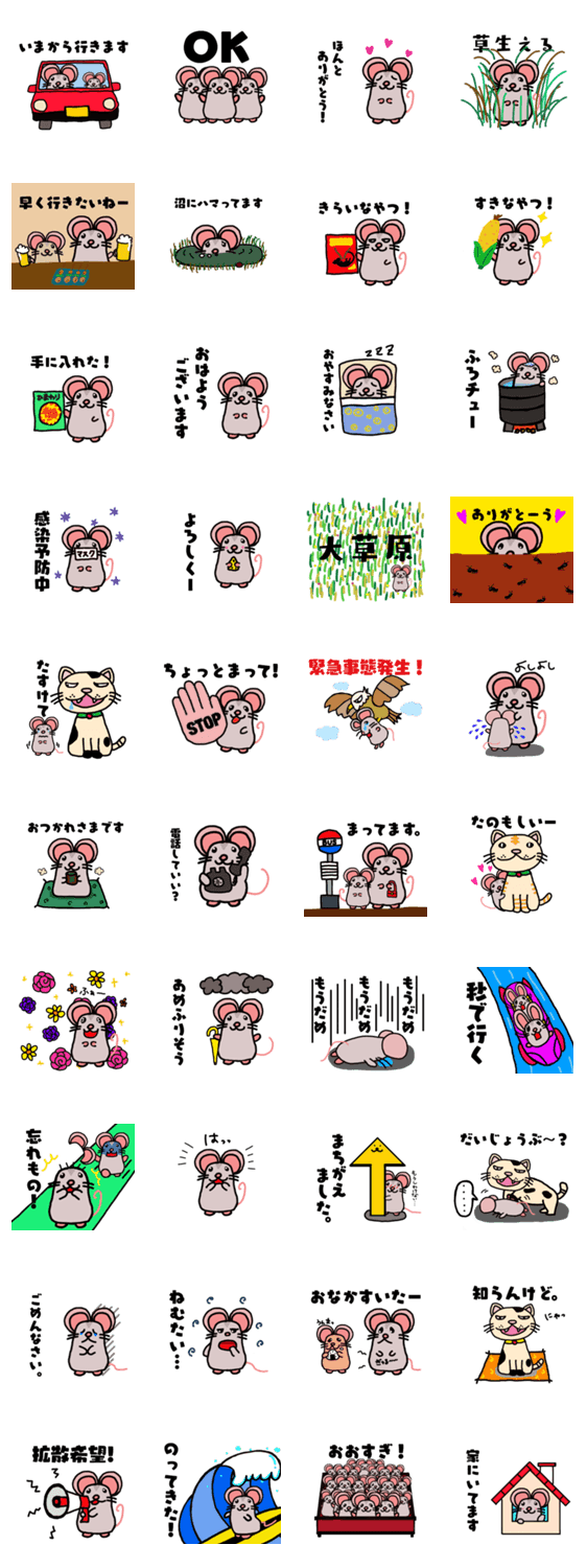 ねずみ「おねず」の生活を毎日使えるスタンプに。