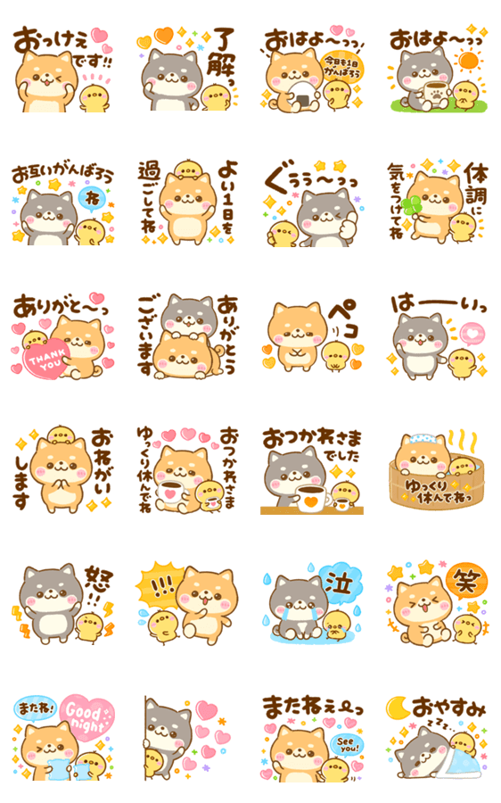 赤柴・黒柴ちゃんが画面いっぱいに飛び出して元気に動く♡柴犬ちゃんたちがほんわか癒しをお届けする大人可愛い毎日使えるポップアップスタンプです♪