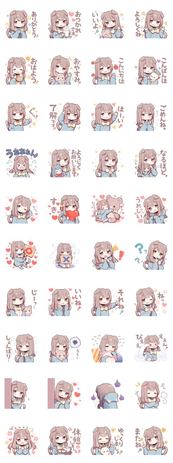 スコティッシュフォールドの猫少女スタンプです。毎日使える挨拶や日常会話、リアクションが沢山入っています。#はじめてのLINEスタンプ にオススメ