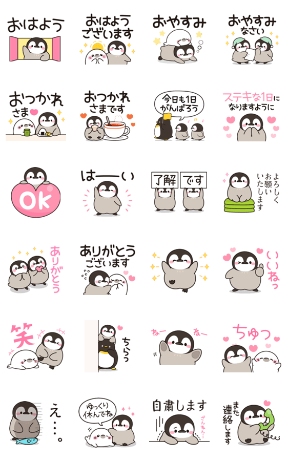 家族・友達・恋人だれにでも使えて便利♪ほのぼの子ペンギンとアザラシ達が大きく飛び出すスタンプです!