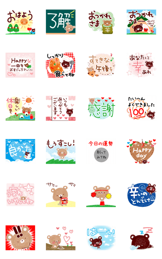 可愛く動く♪くまの使いやすい、気づかい言葉スタンプセットです。
