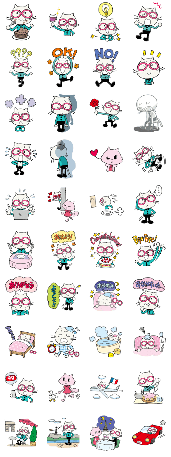 トレードマークはピンク色のだて眼鏡、フランス生まれ日本育ち、スイーツが大好きな猫の男の子、ボンボンです。