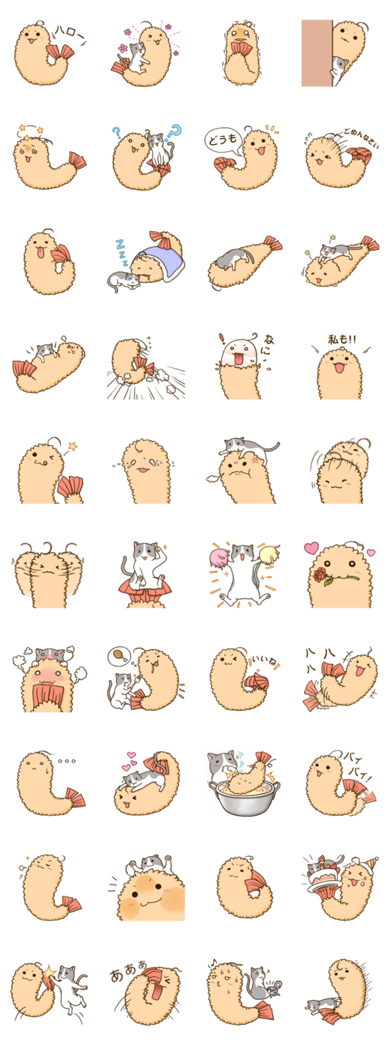| スタンプ説明 | いろんな表情を見せるアホ毛付きのえび天とぶち猫の毎日 |
