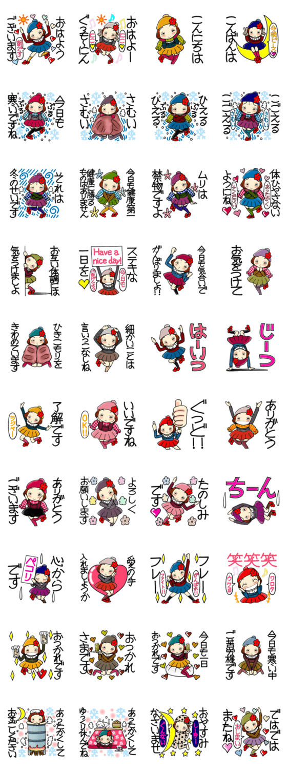 いつも暇をもてあましてるひま子ちゃんの今回は、気楽に使える大人女子の冬の日常スタンプです。よろしくお願いします!