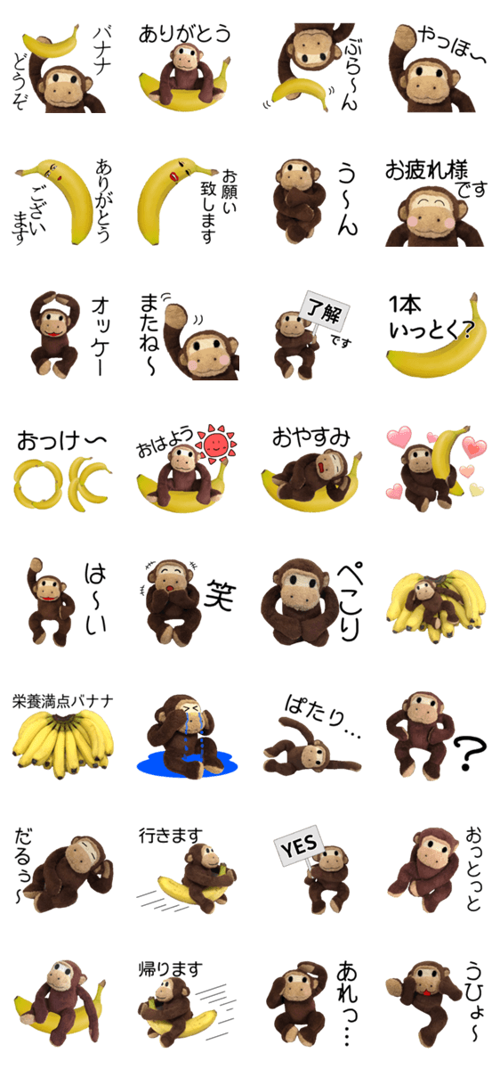 | スタンプ説明 | おサル君とバナナ日常会話からリアクションまで 日常バージョン ⭐︎さる/猿/バナナ/実写⭐︎ |