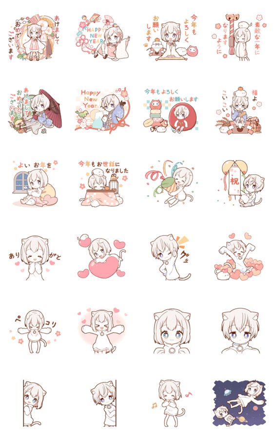 小さな猫の女の子と男の子のお正月スタンプが登場!ちびねこたちが画面いっぱいに飛び出してきます♪年末年始はもちろん、日常で使いやすいものまで厳選しました!