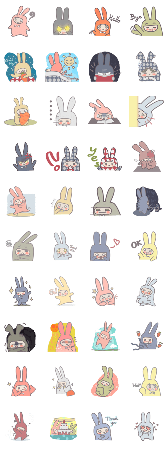 | スタンプ説明 | We're with vivid bunnies. These cute bunnies will help you enjoy your conversation. |