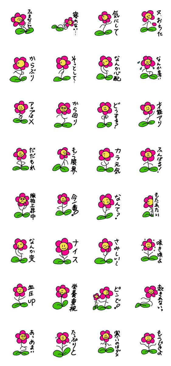 アラフィフ女性の心の呟きを、花に例えてスタンプ!!!