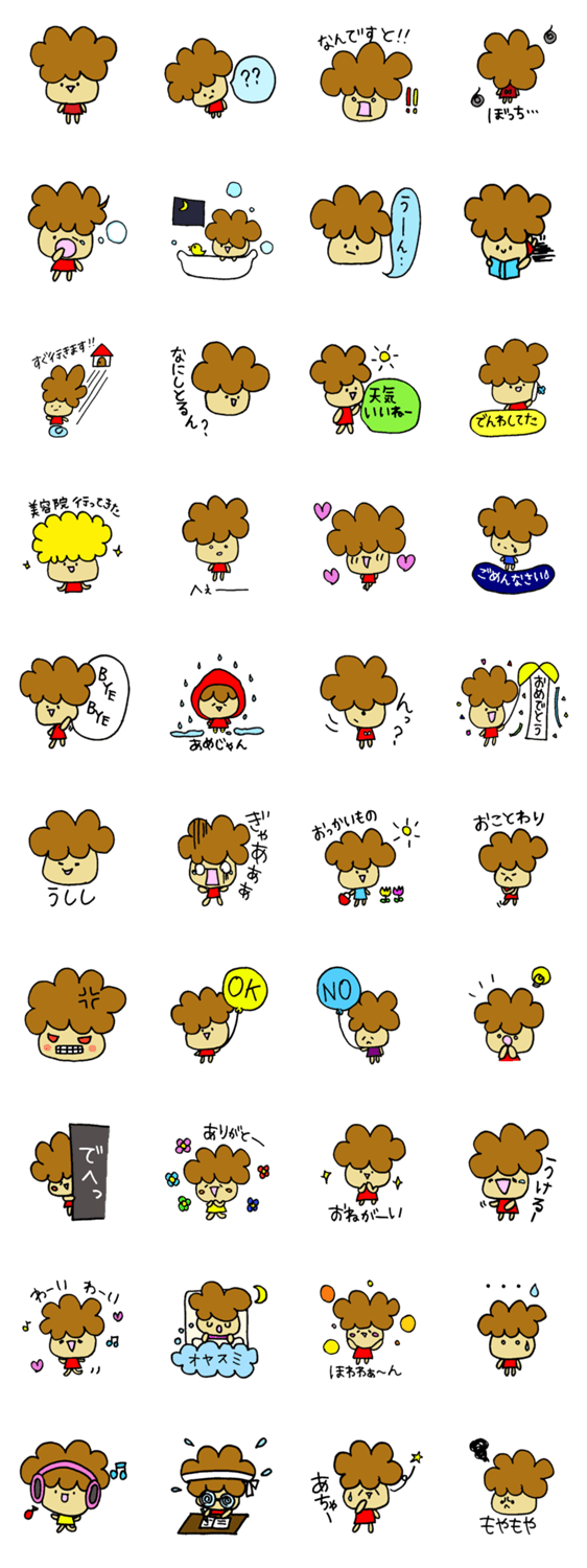 天然パーマのもけもけちゃん。いろんなシーンで使えるスタンプです。