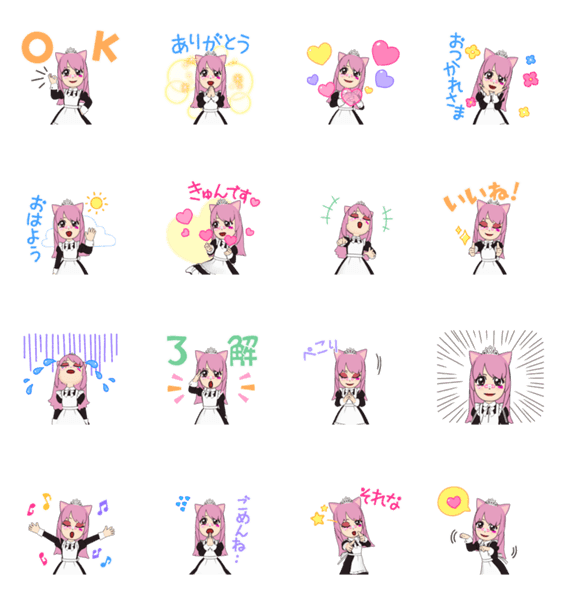 | スタンプ説明 | 猫耳でピンク髪の「さくら」が、色んな表情でLINEを華やかに彩ります✨ ※LINEスタンプメーカーでつくったスタンプです。 |