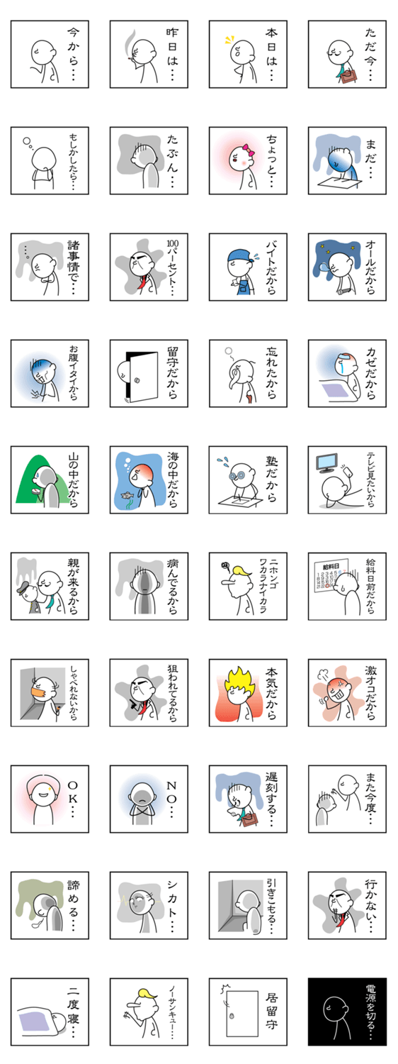3コマスタンプ(いいわけ編) -LINEスタンプマニア
