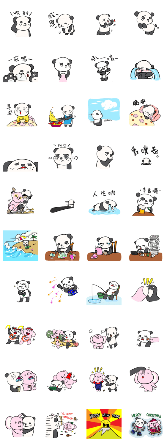 | スタンプ説明 | These stickers are created by Beii and Amimi. Enjoy everyday with elephant and panda. |