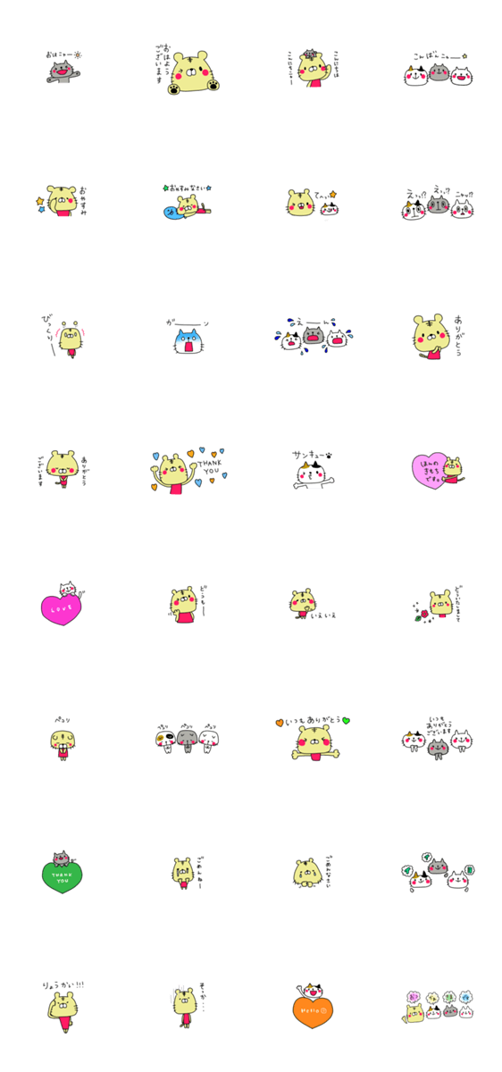 It is a sticker of an illustration of a tiger and a cat. Created by choosing easy-to-use words.
