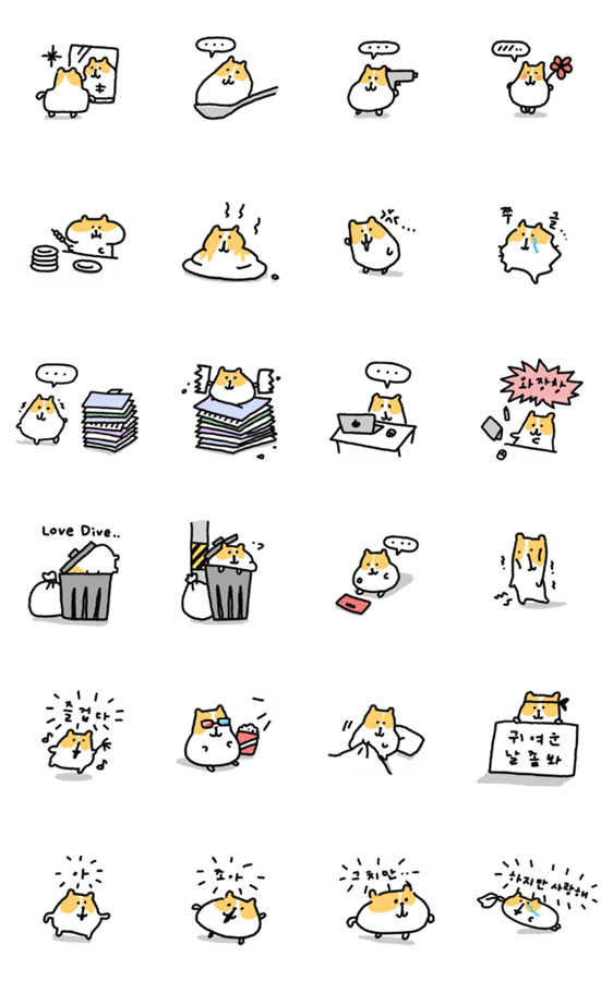 | スタンプ説明 | a silent hamster. All of his words are replaced by actions and eyes. |