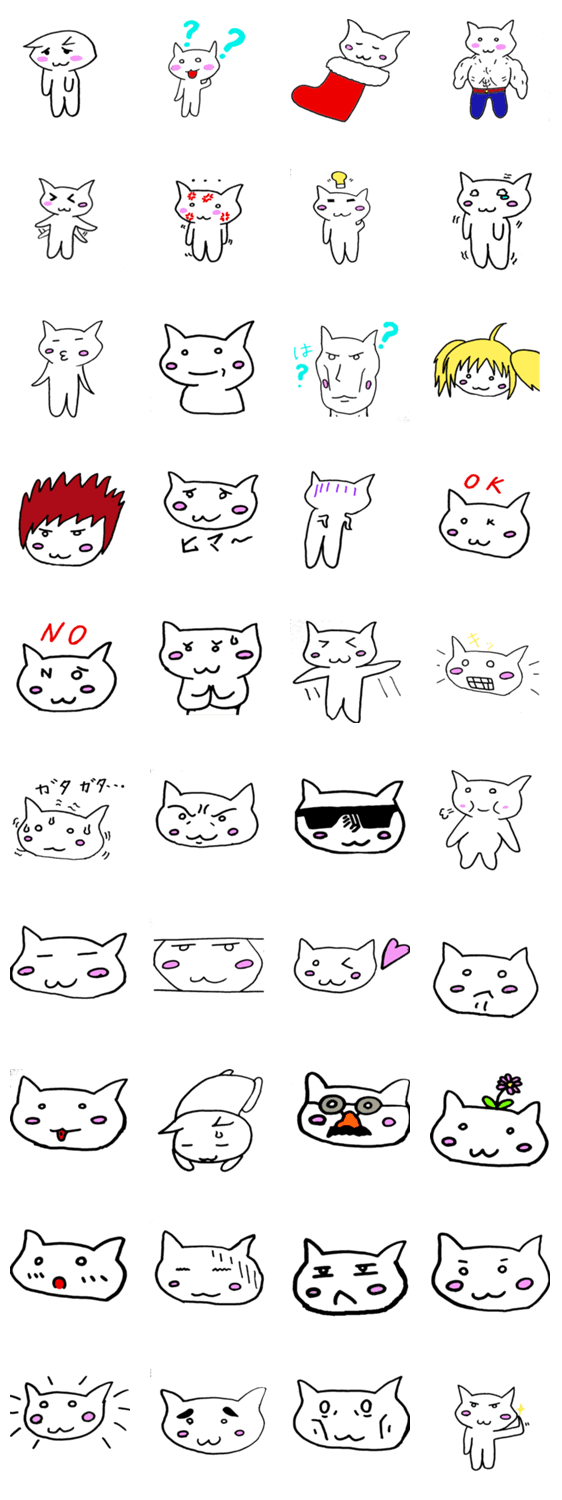 白ネコのあいうえお・・・ってるスタンプ