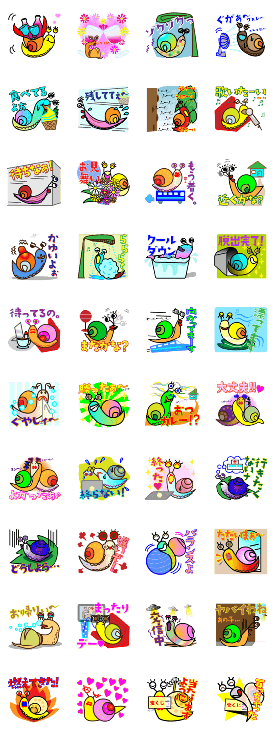 | スタンプ説明 | カラフルな「まいまいファミリー」の中でも明るく感受性豊かな次女編!仲のいい姉妹のやり取りも使えますよ。 |