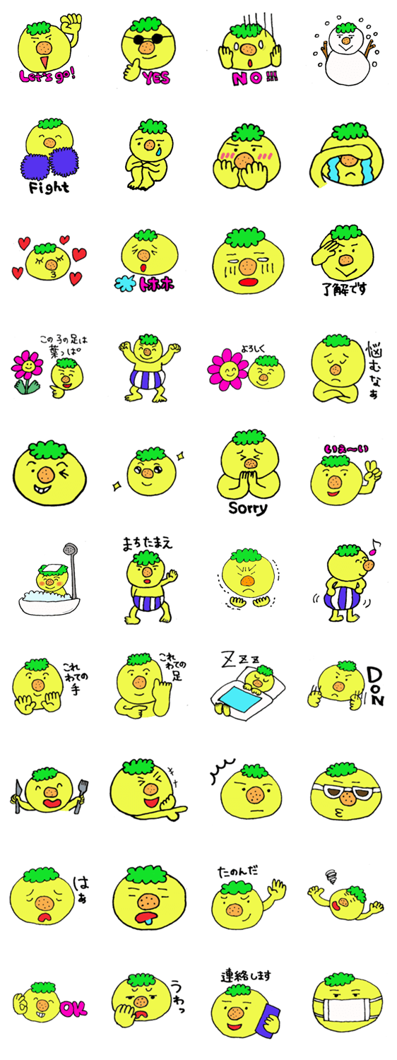 呑気なバナナ色の男の子「わて」のスタンプです。