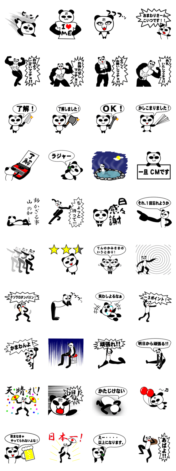 「ちょい悪のパンダ」のスタンプ第2弾です!第1弾とあわせて、憎めない相手にどうぞ!