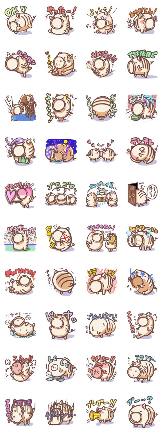 | スタンプ説明 | さかぶーです。蚊取り線香の入ってるあいつ(蚊やりブタ)がモチーフです。「ありがとう」や「おはよう」など、かわいくて実用的なスタンプが入ってるのです! |