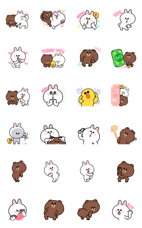 HyperRabbit teams up with Brown, Cony, and Sally in this cute and funny animated sticker set. Part of the "Make stickers with BROWN & FRIENDS" collection.