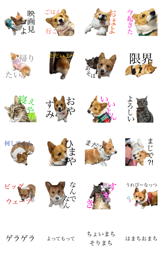 コーギーのはなちゃんがついにスタンプになりました。みーちゃんもいるよ。