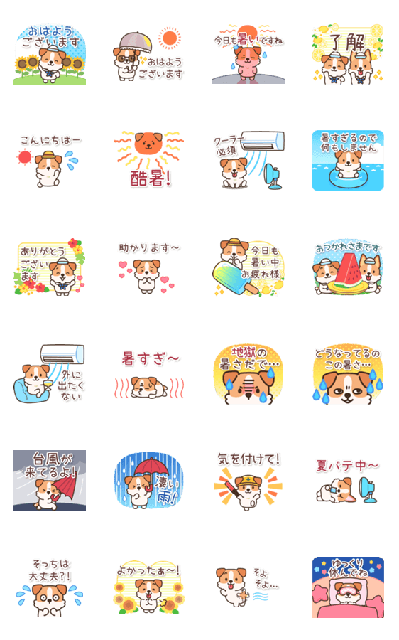 陽気で表情豊かなジャックラッセルテリアが元気いっぱい飛び出すポップアップスタンプです!大人気!夏につかえる言葉がたっぷり♪