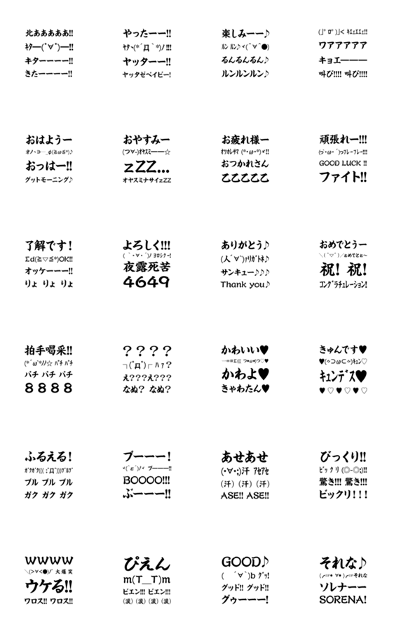 | スタンプ説明 | 筆文字/楷書/和風/書道/顔文字/絵文字/文字が流れる/お祝い/盛り上がる/ハッピー/テンションMAX/気持ち/動く/使いやすい/毎日使える/挨拶/あいさつ/煽り/面白い/かわいい |