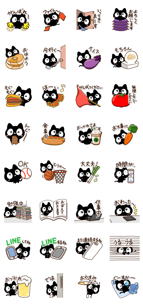 『クロネコすたんぷ』の便利で楽しく送れるスタンプ。ていねいな言葉や気軽に話せる言葉等、毎日使える黒猫スタンプ。【かたこ】可愛いくろねこ・かわいい・お仕事・学校