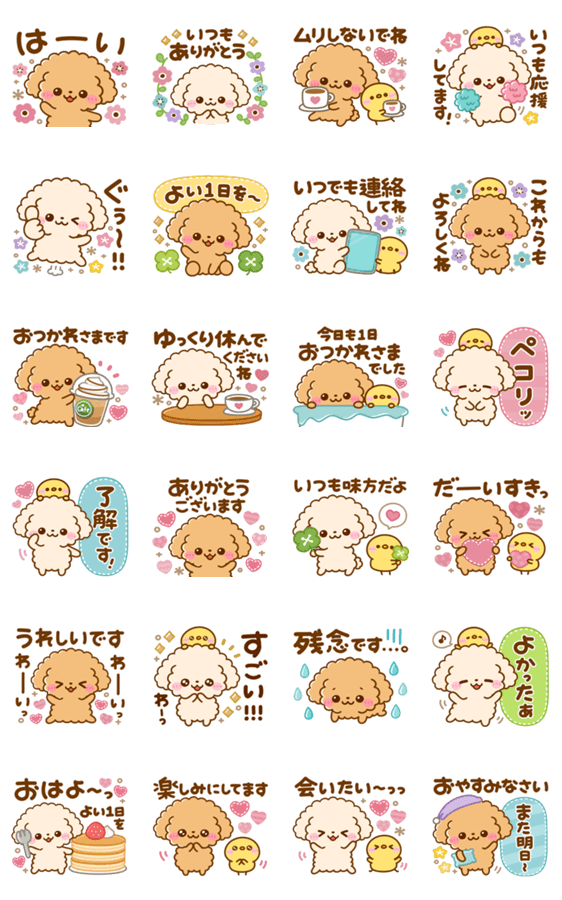 気持ちお届け♡画面いっぱいに飛び出して動く華やかで大人可愛いトイプーのポップアップスタンプです。