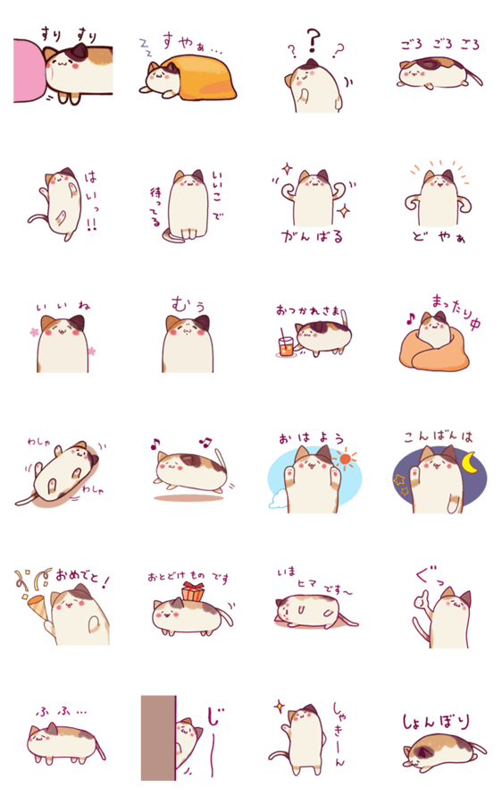 のんびりだらだらなネコさんのスタンプです。日常の会話にぜひ!