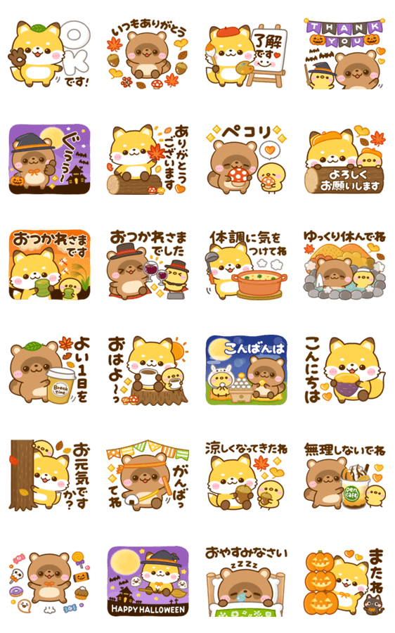 飛び出す♡秋のたぬきつね -LINEスタンプマニア