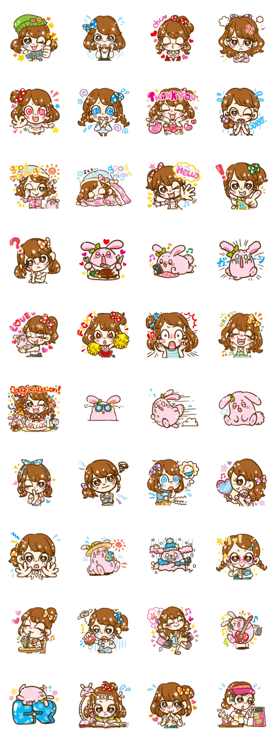 | スタンプ説明 | ハート型の瞳のおしゃれ好きな女の子・はぁとちゃん&ペットなのにちょっと偉そう!?なウサギ・うさ美のカラフルキュートなスタンプ♪ポップで可愛いトークを楽しもう☆ |