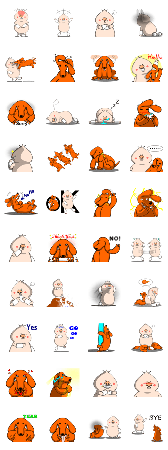 | スタンプ説明 | The pig Thin and the dog Fat are very good friends, They love each other every day. |
