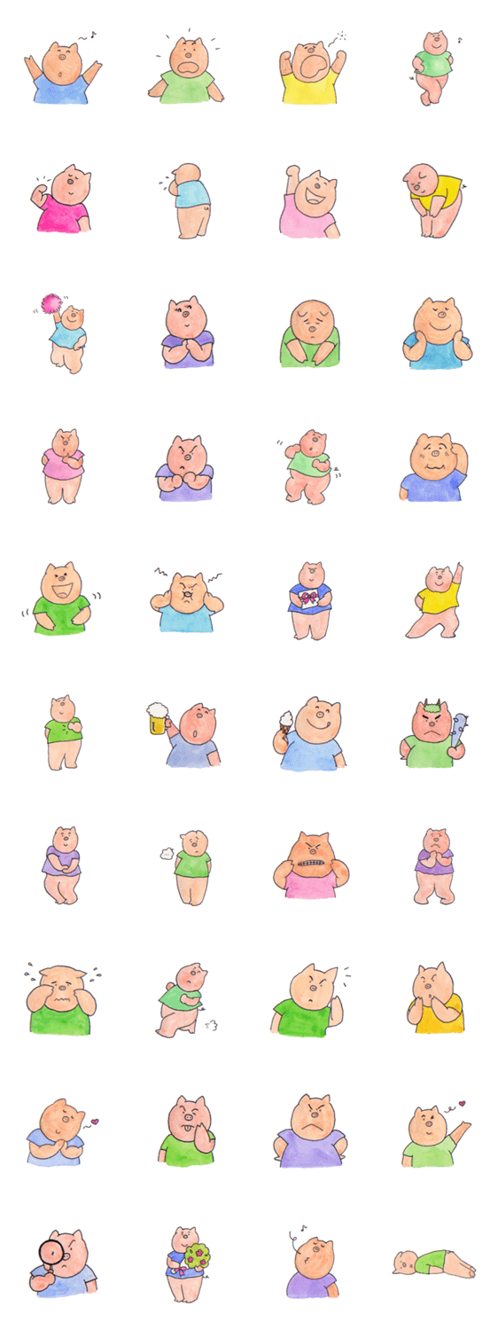 | スタンプ説明 | Here comes Waffy, the world-famous pig! This brave and cheerful pig, Waffy will convey your feelings. |