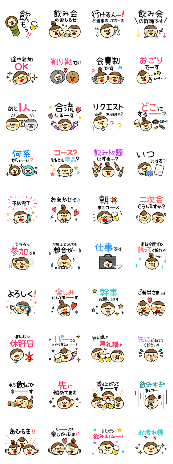 プライベートや仕事での飲み会、忘年会・クリスマス・お正月・新年会など、男女問わず使えるフェイス&メッセージだよ★グラフィックデザイナー【たかせゆづき】スタンプ