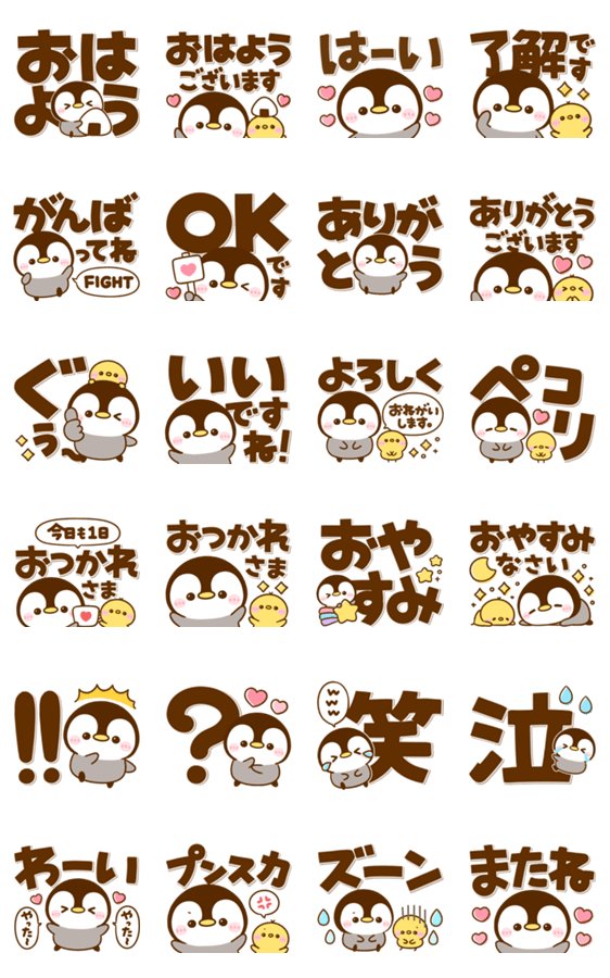小さなペンギンの赤ちゃん「ぺんぺん」が見やすいシンプルなデカ文字と一緒に画面いっぱいに飛び出して動きます♡