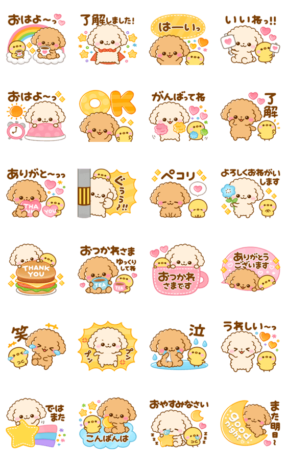 トイプードルのモカちゃんラテくんが画面いっぱいに可愛く飛び出す♡犬の日スタンプです♪