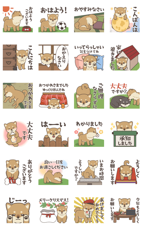 ぽてぽて歩く、柴犬の子犬のスタンプです。敬語&普段使いしやすい言葉を集めました♪