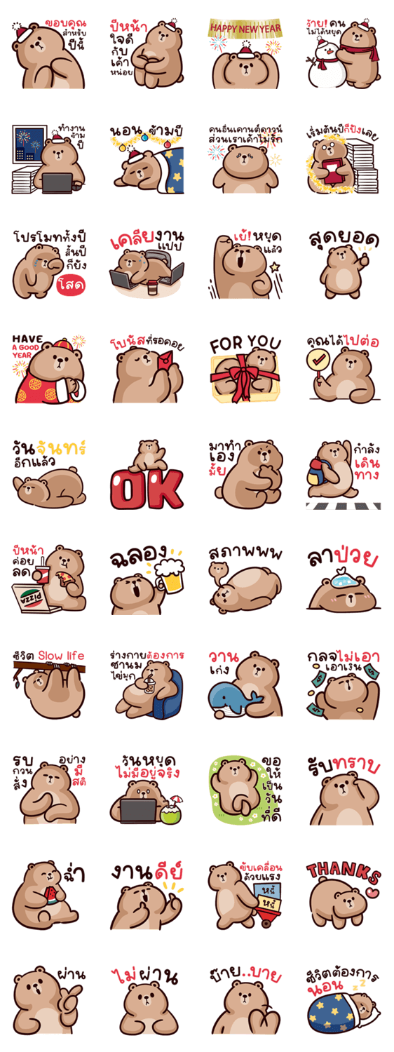 | スタンプ説明 | Jacky Bear, Year-end work is almost over! Let's chat and send greetings along with some playful work vibes. |