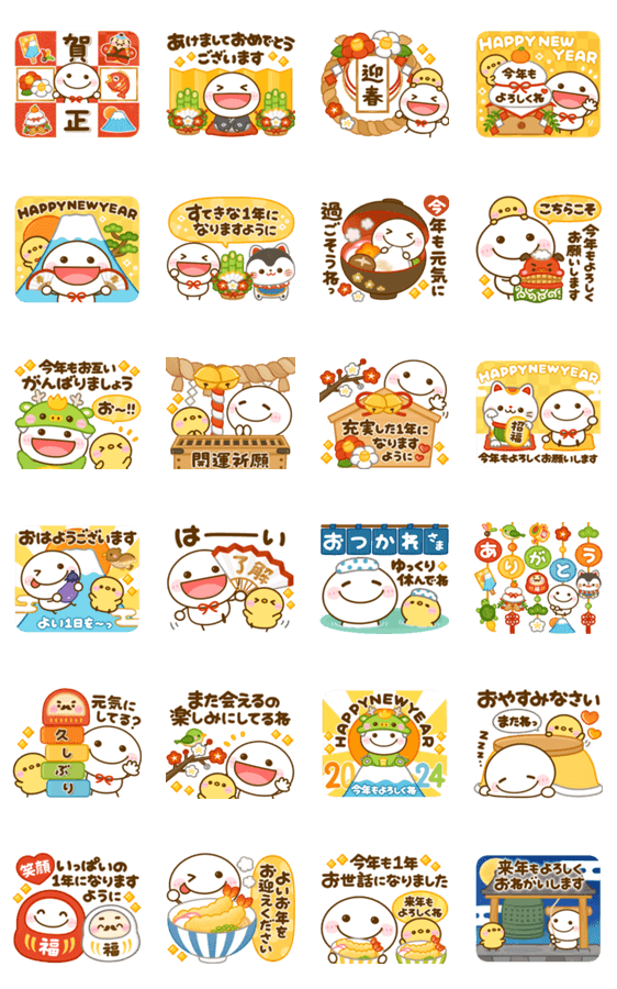 棒人間のちびマロが画面いっぱいに飛び出して可愛く動く♡辰年・お正月・年末年始にぴったりのポップアップあけおめスタンプです。(あけおめスタンプ2024対象)