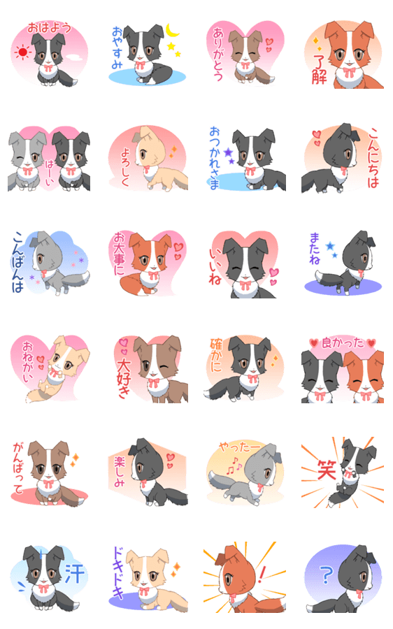 おしゃれなボーダーコリーたちのポップアップスタンプ第1弾。ブラック/レッド/チョコ/ブルー/クリーム/カワイイ/可愛い/キュート/犬/イヌ/もふもふ/モフモフ/挨拶/日常