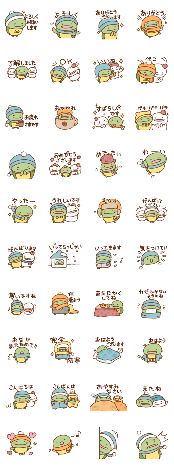 動物の仲間たちから、亀です。マフラーや帽子で暖かくしてます。
