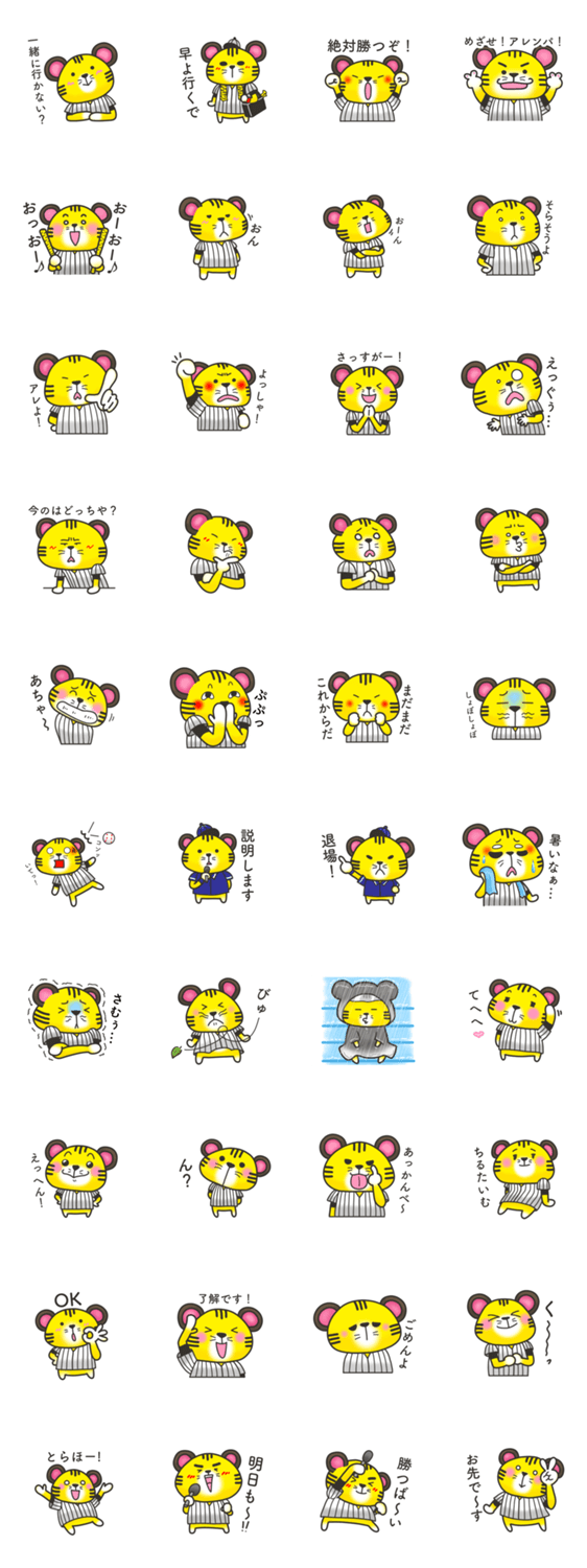 もふっとしたトラが虎の野球チームを応援するスタンプ第三弾 虎党、虎ファンの方に使って欲しいです。