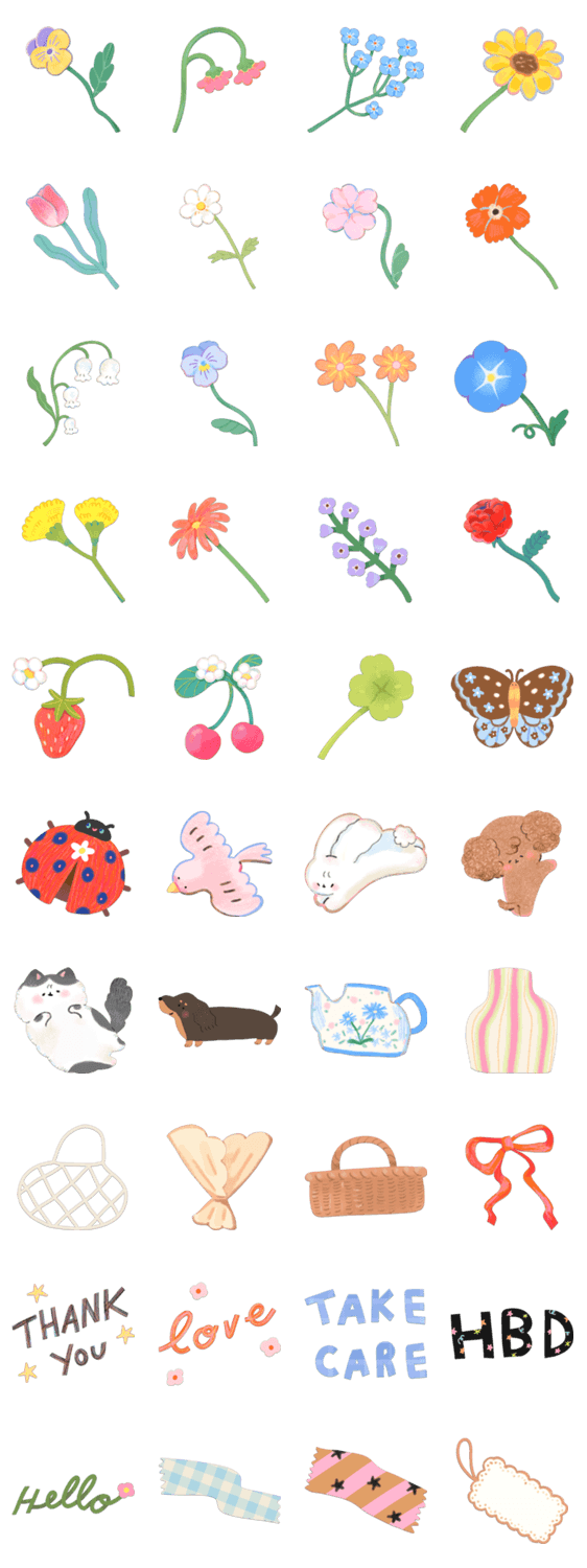| スタンプ説明 | make your own bouquet! flower language can help you express your messages. |