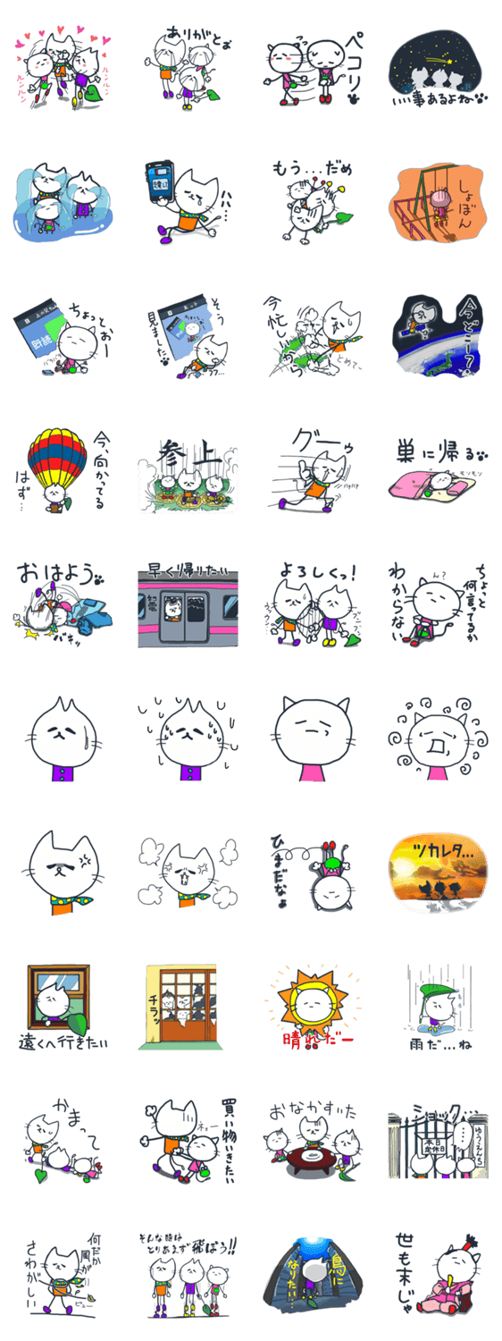 白ネコのあいうえお・・・ってるスタンプ