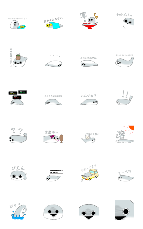 白ネコのあいうえお・・・ってるスタンプ