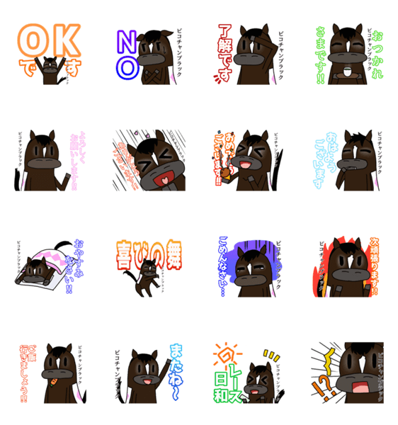 ”ピコ”の冠名が付く競走馬を保有するピコレーシングから「ピコチャンブラック」のスタンプが登場。可愛いアニメーションでトークを盛り上げましょう!