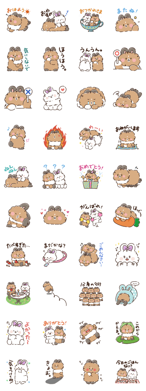家族にも友達にも使いやすいスタンプ。 ライオンラビットのポーヤとミミちゃんが、表情豊かに気持ちを伝えてくれます!